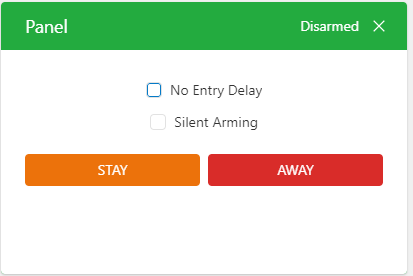 You will see several arming options and panel modes, depending on what equipment you have: